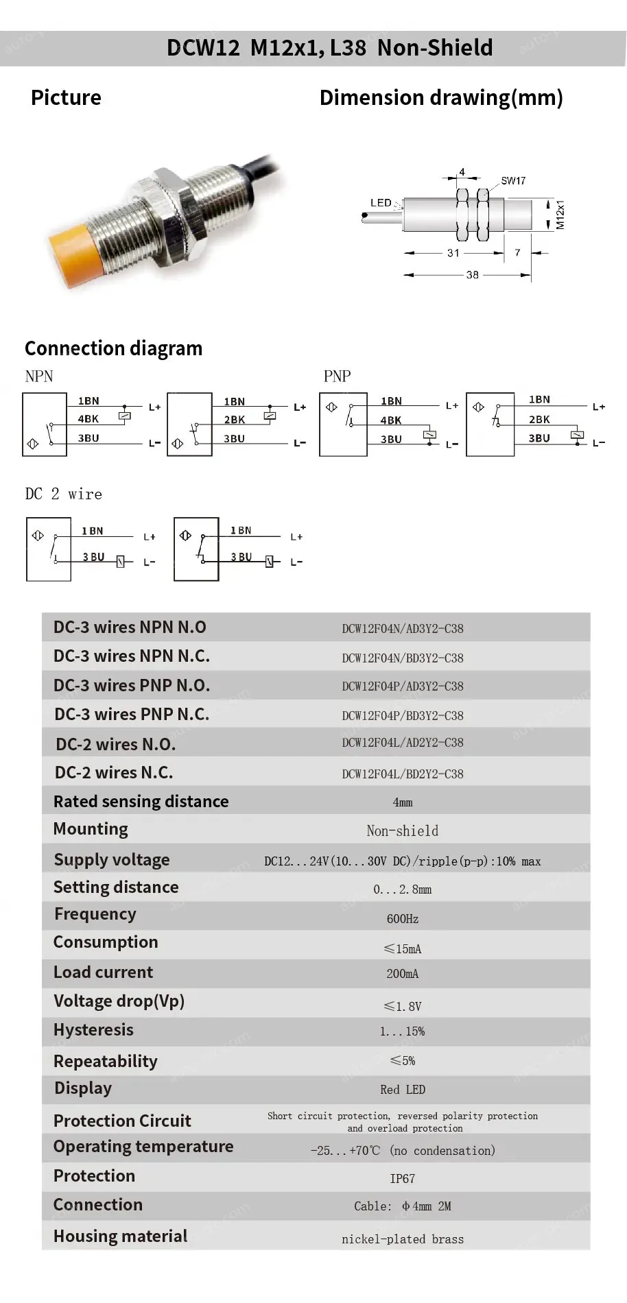 DCW12F04P/BD3Y2-C38 PNP N.C. DC12-24V